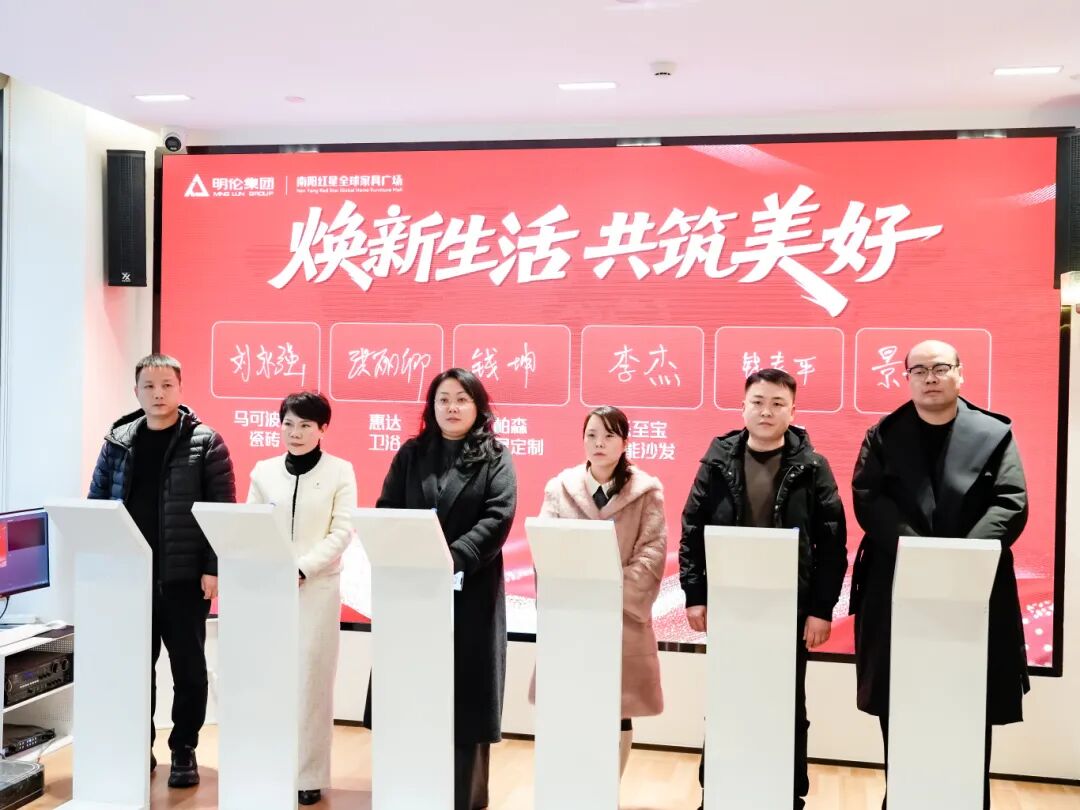 仪式现场,明伦集团董事长蔡浩,常务副总经理古晓,副总经理、总工程师赵培汉,南阳红星全球家居广场总经理赵博宇,活动策划总监毛四阳,运营副总经理刘雷等双方领导共同出席。马可波罗瓷砖、惠达卫浴、顾家家居、诺贝尔瓷砖、柏森全屋定制、好莱客全屋定制、天猫精灵、乐至宝功能沙发、爱依瑞斯时尚家居、帅康厨房电器、欧普照明、金蝉窗帘等品牌负责人悉数到场,与南阳日报、南阳晚报、南都晨报、南阳网、南阳楼市网等本地主流媒体一起,共同见证了这一重要时刻。