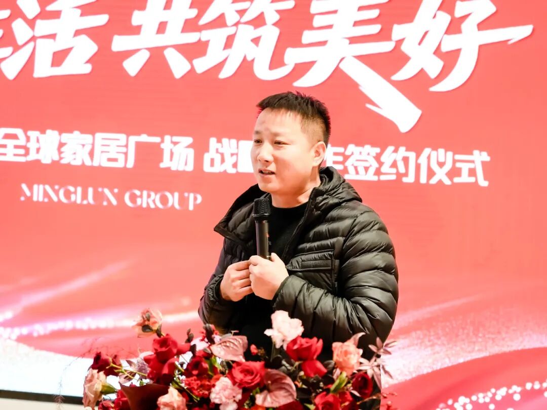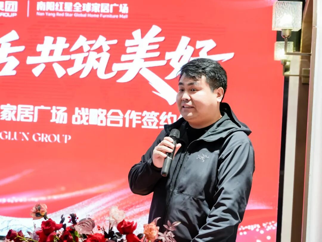 南阳红星全球家居广场总经理赵博宇在发言中表示:本次签约合作打破了家居商场与房地产开发的传统边界,实现了“新房交付”与“家装服务”的无缝衔接,是一次资源互补、模式创新的有益探索;花漾美郡的业主们在收获新居的同时,可直接享受到更专业、更便捷、更优惠的家装服务,无需再为装修东奔西走,真正实现“交房即装修,商场送上门,小区内即可完成自主、多样、优质、低价”的省心体验;并现场宣布,为了让合作红利尽快对接到业主手中,商场已做好准备,从交房之日起就进驻小区设立分场,更会安排专业的设计师、建材顾问驻场服务,为业主提供一对一的户型规划、装修报价、选材建议等免费咨询,还将联合组织家装知识讲座、样板间品鉴等互动活动,让业主在家门口就能沉浸式体验装修的全流程;同时,针对小区收房业主,每户发放8000-10000元家具现金补贴券,在选购套床、沙发时享受每套2000元商场补贴;将与明伦集团共同探索建立长期、深入的服务共建机制,确保家居生活服务始终贴近业主的真实需求。